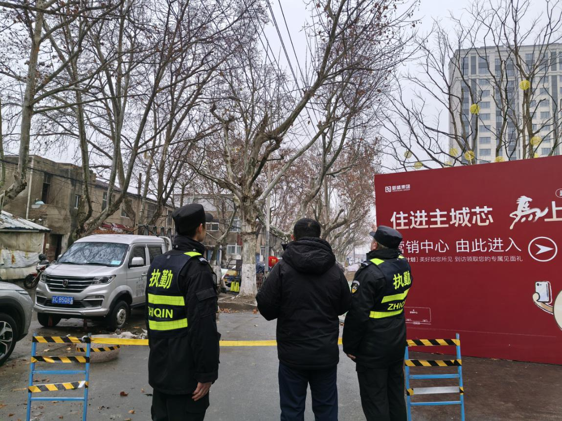 2026年1月25日上午11时40分,徐州市保安服务有限公司驻新盛畅和园小区的保安员佟宏阳、经成成在执行日常安全巡逻。当行至小区西门外津浦东路的法桐树区域时,两人并未因严寒和积雪放松警惕。近日的一场大雪使树木承重变形、枝叶湿漉,他们格外关注沿线情况。