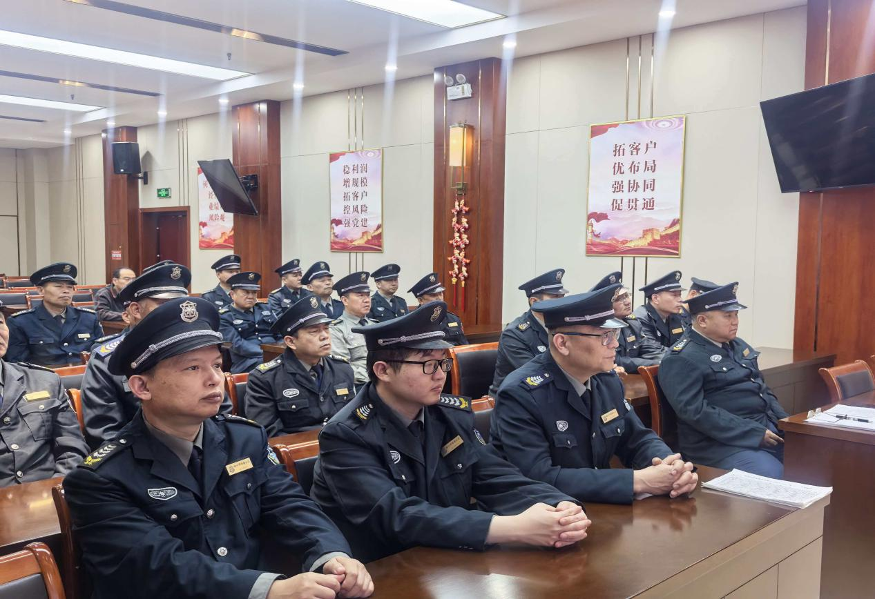 理论授课环节靶向赋能、干货满满。一是强化责任担当,围绕从严治安、规范履职核心准则,结合我司常态化巡查管控、中队日常精细化管理工作机制,宣讲安全工作理念,引导全体队员深刻认清金融安保岗位的重要职责与使命;二是明晰行业价值,解读保安行业高质量发展趋势,重点阐述我司在地方安防、金融护航、社会维稳中的重要作用,提升队员职业认同感与团队凝聚力;三是对标规范提质,对照公司统一执勤标准与金融网点服务要求,逐项梳理日常工作短板,明确岗位提升方向,推动安保服务标准化、规范化落地;四是规范应急处置,普及突发事件处置相关法规,细化网点执勤礼仪、沟通规范、矛盾化解流程,重点开展场景化沟通话术专项学习,覆盖日常服务、纠纷调解、突发应对等各类场景,以专业素养筑牢安全第一道防线。